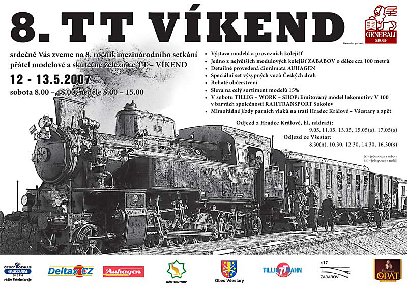 Co bylo k vidění v prostorách prodejny Deltaxu? Hned při vstupu do zadní části prodejny rozložila firma Tillig svá výstavní kolejiště. Pro jedno z nich není název kolejiště možná na místě. Na nízkém panelu byly prezentovány nové START soupravy pro začínající modeláře a nové kolejivo se štěrkovým ložem, vše sestavené, se zapojeným ovladačem a navíc doplněné sadou kostek. Panel byl po celou dobu v obležení těch nejmenších, kteří zkoušeli, co modely vydrží. Další velkou část prostor zaplnila se svým stánkem prodejna Modellbahnshop Sebnitz. Ta zajišťovala prodej objednaných a předplacených speciálních modelů a setů, které byly vyrobeny speciálně pro letošní TT víkend. Zaplněné regály v pozadí dávaly tušit, že její zástupci nepřijeli s prázdnou. Sortiment byl skutečně bohatý a ačkoliv se fronta nakupujících činila, zdálo se, že zásoby jsou nevyčerpatelné. Kdo při vstupu odolal výstavní slevě 15% v prodejních prostorách Deltaxu, byl zde atakován nabídkou modelů, které se na našich pultech běžně neobjevují. Dále v zadních prostorách prodejny byla vystavena další modelová kolejiště, některá se na výstavách vyskytují pravidelně. Firma Auhagen s sebou přivezla opět sadu kvalitně zpracovaných diorámat nejen ve velikosti TT a malé kolejišťátko s oválem, které především prezentovalo již hotové modely z jejich výrobního programu. Za ostatní prezentované bych snad zmínil významného tuzemského malovýrobce Loco a klubové zastoupení TT-Club. Kdo byl unaven přemírou vystavovaných modelů, mohl se venku dostatečně občerstvit. Kromě jiného se na rožni od rána připravovalo tradiční sele, avšak nevydrželo nápor návštěvníků a v sobotu odpoledne zbyl pouze ten prázdný rožeň. Kdo neměl modelů dost, mohl pokračovat do nedaleké tělocvičny základní školy, kde opět sestavil své moduly Zababov. Této výstavě však budu věnovat samostatnou reportáž. Další informační zdroje: