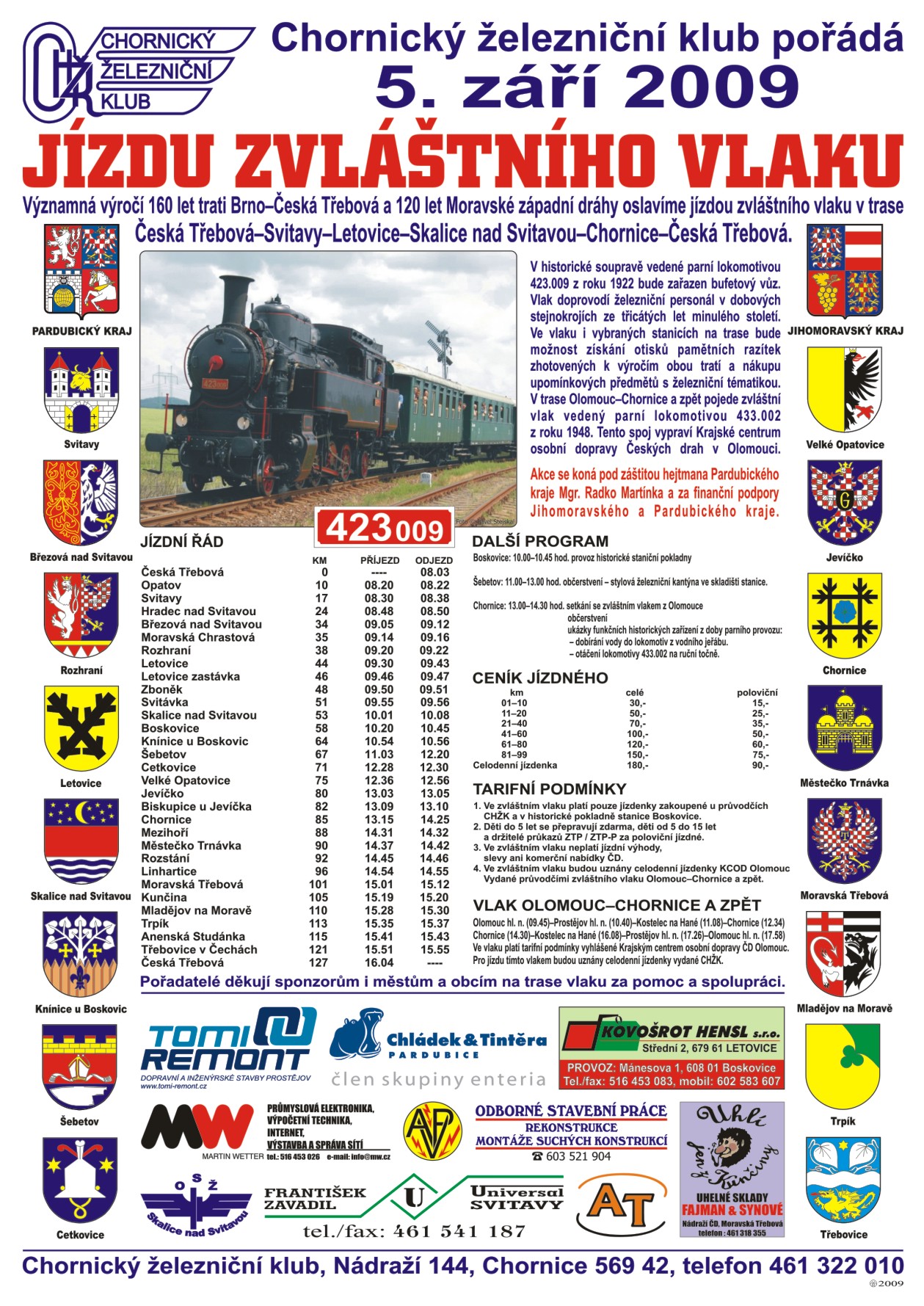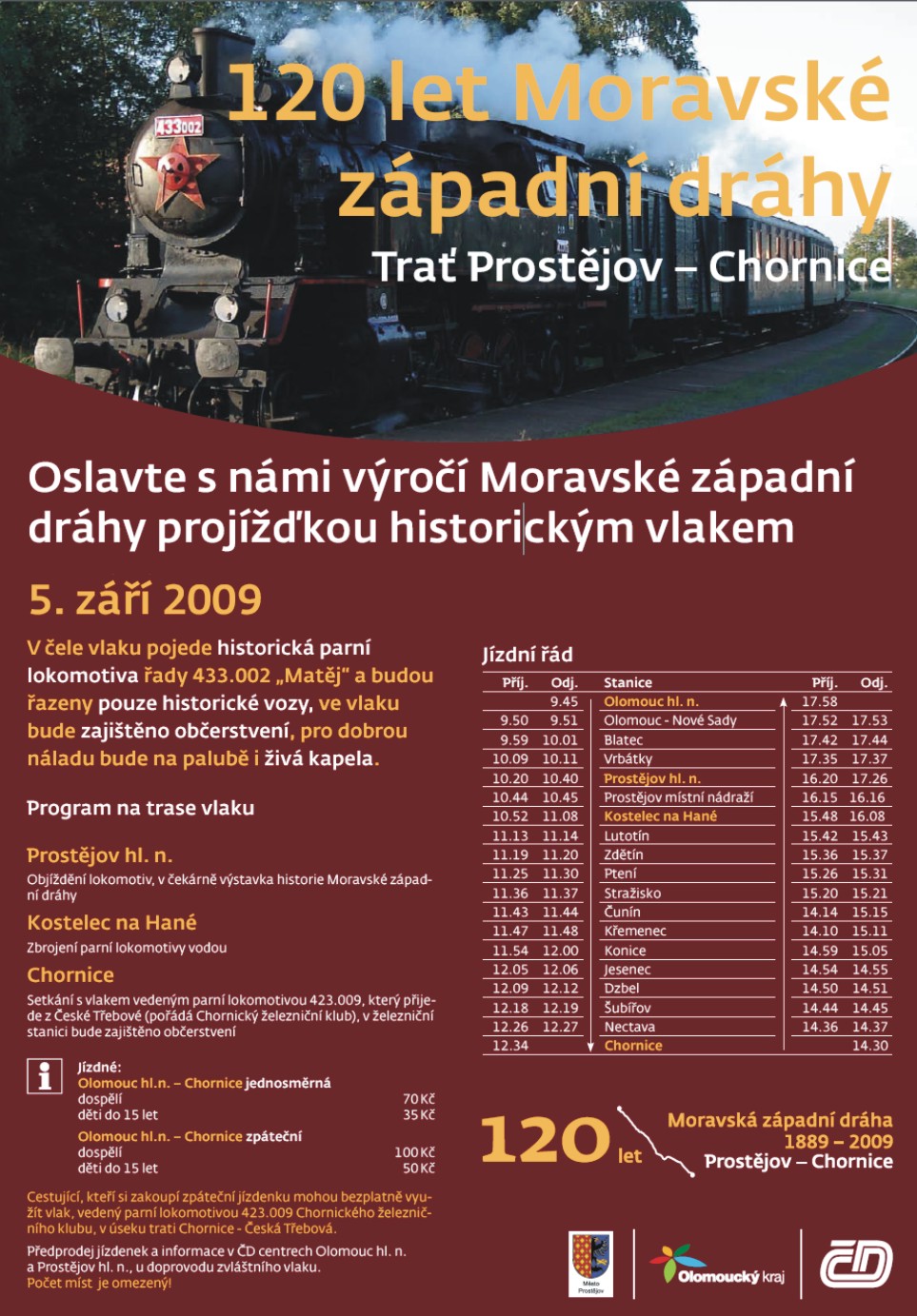 160 let trati Brno - Česká Třebováa 120 let Moravské západní dráhy 5.9.2009