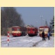 V sobotu ráno jsem kolem půl deváté spěchal na šumperské nádraží. Teplota klesala pod -15°C a vyházející slunce slibovalo hezký, ale mrazivý den. Souprava vlaku M131.101 + Balm (020) byla připravena k odjezdu u 3. nástupiště. Několik minut po půl devátě odjíždíme nejdříve do Zábřehu na Moravě, kde čekáme na volnou trať do Červenky. Času máme dostatek. Podle plakátu má první zvláštní vlak odjezd z Červenky plánován v 9:49. Jedeme dál. V oblasti Litovelského Pomoraví nás přivítala mrazivá mlha tak hustá, že se v ní "Hurvínek" ztrácel při objíždění soupravy v Července. V 9:47 přijíždí z Litovle pravidelný Os14064. Pro nás je důležitý, protože přiváží rovnou dvě družiny. Jedna družina bude procházet motorový vůz M131.101 a druhá přívěsný vůz Balm. Již s prvními cestujícími odjíždíme v 9:49 jako Os31095 do stanice Litovel předměstí. Tam jsem pojal podezření, zda nám bude kapacita obou vozů postačovat. Vlakový doprovod byl sehraný a všechny cestující nasměroval do správných vozů. Do motorového vozu M131.101, označeného jako místenkový vůz č. 1, byli směřováni cestující s místenkami, ostatní potom do přívěsného vozu. V 10:05 odjíždíme jako Os31094 do Mladče. Bylo nádherné slunečné počasí a teplota začala pomalu soupat nad -10°C. Plně naložená souprava vlaku statečně zdolávala převýšení 45m z Litovle předměstí do Mladče. Po příjezdu do Mladče bylo pro všechny přichystáno občerstvení v areálu firmy VÁPENKA VITOUL s.r.o. a také zbyla chvilka času na pořízení fotografií M131.101 při objíždění soupravy. Nic naplat, v 10:40 máme plánovaný odjezd jako Os31097 do Litovle předměstí a po přestavení soupravy pokračujeme v 11:05 do Senice na Hané. Ve vlaku panuje dobrá nálada, družina obešla všechny děti a začíná se zpívat. V Senici na Hané je opět pár minut na pořízení prosluněné fotografie. Před zpáteční jízdou musíme počkat na příjezd osobních vlaků Os31097 v 11:42 z Červenky a Os31097 v 11:44 z Olomouce. Teprve potom odjíždíme jako Os31096 zpět do Litovle předměstí. Než motorový vůz M131.101 objede soupravu vlaku, vymění se část cestujících. Na druhou jízdu do Mladče již není souprava vlaku tak zaplněna a Mikuláš s družinou nemá tolik práce. S několikaminutovým zpožděním přijíždíme do Mladče. Zatímco se opět cestující veřejnost občerstvuje, našla se i chvilka času pro pózování Hurvínka před staniční budovou. Pobyt ve stanici se nakonec přece jen trochu protáhl. Díky mrazivému počasí trochu pozlobily výhybky. Dobrá nálada nás neopustila, i jsme jako Os31099 odjeli z Mladče o nějakých dvacet minut později. V Litovli předměstí vystupuje většina cestujících a my pokračujeme do Červenky jako Os31098. Hned na další zastávce Litovel město vystupují oba Mikuláši s družinami a po několika minutách končí v Července letošní Čertovské jízdy. Nezbývá než poděkovat všem sponzorům, kteří podpořili konání letošní akce. Na závěr v Července ještě jedno foto vlakového doprovodu, který se staral o bezchybné konání akce a potom nás čekala jen zpáteční jízda zpět do Šumperka. Další informační zdroje: