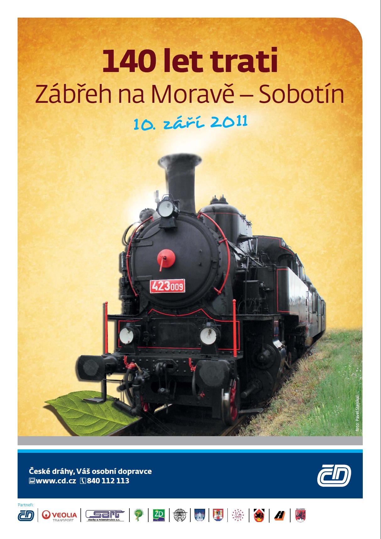 140 let trati Zábřeh na Moravě - Sobotín   O výstavbu trati před 140 lety se zasloužili bratři Kleinové, kteří usilovali o zajištění nákladní dopravy ze svých železáren v Sobotíně. Během jednoho roku vybudovali trať Zábřeh na Moravě (Hohenstadt) - Sobotín (Zeptau) v celkové délce 22,3 km. Na trati byly zpočátku provozovány dva páry smíšených vlaků. Trvalo ještě dalších 30 let, než došlo k postupnému rozšiřování trati vybudováním odbočky Petrov nad Desnou (Petersdorf) - Kouty nad Desnou (Winkelsdorf) v celkové délce 13,5 km. Do roku 1997 zajišťovaly provoz na trati ČSD/ČD. Při povodni v červenci 1997 byla trať od Šumperka dále vážně poškozena a ministerstvo dopravy neuvažovalo o její opravě. Situace vyústila v založení „Svazku obcí údolí Desné”, který převzal trať Šumperk - Petrov nad Desnou (- Sobotín) - Kouty nad Desnou. Trať byla během dvou let znovu zpovozněna pod názvem Železnice Desná.