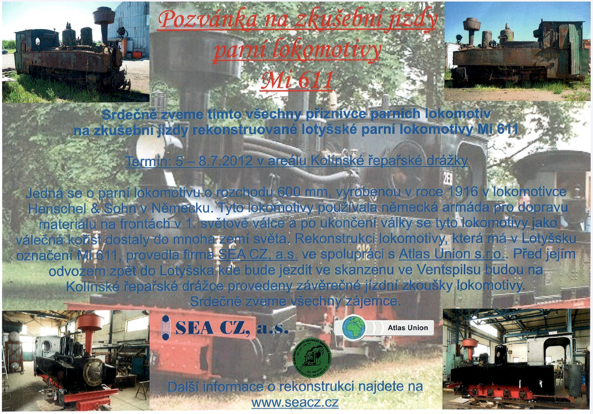 Pojďme se podívat na tuto parní lokomotivu trochu blíže. Na nástupišti řepařské drážky byla velká informační tabule „Oprava lotyšské parní lokomotivy Ml-611” a další vyčerpávající informace s popisem opravy a fotogalerií je přímo na webových stránkách firmy SEA CZ. Tam se můžeme také dočíst něco z historie parní lokomotivy. Tuto řadu parních lokomotiv s rozchodem 600 mm vyrábělo více lokomotivek, např. Henschel, Krauss, Borsig, Orenstein & Koppel, a byly a jejich primární využití u německé armády byla doprava materiálu na frontách v I. světové válce. Lokomotivy byly často dodávány s přívěsným tendrem s dostatečnou zásobou vody. Standardní výbavou lokomotiv byl i pulzometr se sací hadicí a trubkou, který umožňoval dočerpání vody pomocí vlastní páry z dostupných zdrojů v místě provozu - z potoka nebo studny. Pro lokomotivy se vžilo označení „Brigadelok”. Po ukončení války se lokomotivy jako válečná kořist dostaly do mnoha zemí světa. Konkrétně tato lokomotiva byla vyrobená v roce 1916 v lokomotivce Henschel & Sohn, Cassel v Německu. Rekonstrukci lokomotivy Ml-611 provedla kolínská firma SEA CZ, a.s. ve spolupráci s firmou Atlas Union s.r.o. během zhruba 9 měsíců. Jak je patrno z dokumentujících fotografií, původní lokomotiva byla již spíše vrakem a tak bylo nutné většinu dílů vyrobit nové podle předlohy. Barevné provedení bylo provedeno podle požadavků lotyšského majitele lokomotivy.