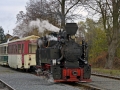 Připravená souprava vlaku počítala s chladnějším počasím. Kromě tří otevřených výletních vozů byly na konec soupravy zařazeny dva kryté vozy Balm/ú. První v barevné kombinaci zelená-slonová kost ladí ke zbytku soupravy a nese označení vlastníka Slezských zemských drah (SZD). Druhý, posilový vůz, v původním „polomáčeném“ barevném schématu patří ČD. Ještě před odjezdem zvláštního parního vlaku v 10:45 byla slavnostně předána do užívání další novinka, ozvučení soupravy parního vlaku, které financoval Mikroregion Krnovsko. Během cesty tak mohou být turisté seznámeni se zajímavosti a památkami v okolí projížděné trati. Takovéto využití ozvučení vlaků není v České republice běžné, a proto SZD čerpají inspiraci z obdobných turistických vlaků ze zahraničí. V 10:45 se parní vlak Os20651 vydává na cestu a hned v prvním stoupání za Třemešnou je znát, že se topič na parní lokomotivě U57.001 „Malý štokr“ dnes zapotí. Přece jen dva těžké vozy Balm/ú na konci vlaku jsou znát. I přes typické podzimní počasí jsou zaplněny i otevřené výletní vozy. O pohodu všech cestujících se cestou stará osazenstvo pivního vozu, které v tomto počasí nabízí teplejší a energetičtější nápoje. Pro většinu cestujících je cílem cesty ve 12:51 Bohušov, odkud je to do rekreačního areálu coby husím stehýnkem dohodil. Souprava téměř prázdného vlaku pokračuje až do Osoblahy s příjezdem ve 12:03. Jak bylo avizováno, na zpáteční jízdu bude výkon parní lokomotivy U57.001 „Malý štokr“ posílen o parní lokomotivu U46.002 „Resita“. Ta během letní turistické sezóny měla své stání zajištěno v remíze v Osoblaze a ve vyhlášených termínech byla nasazována na doplňkové parní vlaky, které zajížděly z Osoblahy do Slezských Rudoltic a zpět. Teď na konci sezóny se na vlaku Os20650 přesune zpět z Osoblahy do depa v Třemešné. Letos by měla absolvovat ještě Mikulášskou jízdu, poslední jízdu v tomto kalendářním roce. Na zpáteční jízdu se parní vlak Os20650 vydal z Osoblahy v 15:08 v čele s oběma parními lokomotivami. V Bohušově nabral cestující do Třemešné ve Slezsku a vzhledem k tomu, že se odpoledne začalo více ochlazovat, přednost dostaly oba vytápěné vozy Balm/ú řazené hned za parními lokomotivami. Při zpáteční jízdě světla rychle ubývalo a do Třemešné ve Slezsku přijížděl parní vlak v 16:39 už za tmy. Několik záběrů dokumentuje jízdu zvláštního parního vlaku, ovšem chybí záběry z jízd pravidelných vlaků. Pouze několik statických prostřihů dokumentuje odstavené lokomotivy 705 917-3 v Třemešné ve Slezsku a 705 914-0 v Osoblaze. Krátký sestřih trochu zpestřují záběry z dění v Osoblaze, kdy po příjezdu parního vlaku Os20651 už stála před remízou roztopená lokomotiva U46.002 „Resita“. Sychravé poledne vyplnil následný posun a zbrojení obou parních lokomotiv a zbylo dost času na přejezd do Bohušova na Svatomartinské hody. Po občerstvení a zahřátí v Bohušově jsme stihli zrovna parní vlak Os20650 na odjezdu z Osoblahy v 15:08. Několik dalších záběrů zachycuje tandem obou parních lokomotiv při zpáteční jízdě. Světelné podmínky se ovšem každou minutou velmi zhoršovaly a tak ne každý záběr byl použitelný. Poslední v Třemešné ve Slezsku jen dokumentuje odstoupení parní lokomotivy U46.002 „Resita“ od vlaku, zatímco parní lokomotiva U57.001 „Malý štokr“ ještě za tmy odvedla kus práce při úklidu vozů soupravy vlaku. Několika větami bych se ještě pozastavil u současné situace s vozovým parkem na Osoblažce, která bohužel není vůbec optimistická. Ještě před několika lety byly na Osoblažce dislokovány celkem čtyři lokomotivy - 705 916-5, 705 917-3, 705 914-0 a 705 913-2 (jediná rekonstruovaná). V roce 2014 byla lokomotiva 705 916-5 jako neprovozní odvezena do Muzea ČD v Lužné u Rakovníka. Další lokomotiva 705 917-3 je dlouhodobě neprovozní a je odstavena na kusé koleji v Třemešné ve Slezsku. Provoz pravidelných osobních vlaků tak mají zajišťovat lokomotivy 705 913-2 a 705 914-0 (v roli zálohy). Ovšem od června po závadě na motoru je lokomotiva 705 914-0 neprovozní, odstavená na kusé koleji v Osoblaze, kde dříve stávaly ostatní neprovozní předchůdkyně. Vozbu pravidelných osobních vlaků nyní zajišťuje jediná lokomotiva 705 913-2, ovšem bez zálohy a při jakékoliv závadě tak trať osiří a na úzké silničky musí vyrazí autobus. Tento stav nastal i tento týden, kdy je od 1. listopadu ohlášena NAD z důvodu poruchy lokomotivy s předpokládanou dobou trvání do 18. listopadu. Další informační zdroje: