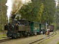 Trať, kterou jsme tentokrát navštívili, má v jízdním řádu přiděleno číslo 229 a vede z Jindřichova Hradce do Nové Bystřice. Svým charakterem se jedná o trať turistickou. Vždyť zatímco po silnici z Jindřichova Hradce dosáhneme Nové Bystřice po ujetí 20 km, tak po klikatící se trati musíme ujet 33 km většinou loukami a lesy mimo civilizaci a s jízdní dobou nějakých 70 minut v případě pravidelných motorových vlaků. Turistickému charakteru trati odpovídá i jízdní řád, který je rozdělen na zimní, jarní/podzimní a letní verzi. Podle zimní verze jízdního řádu je dvěma páry pravidelných vlaků denně obsluhován pouze úsek z Jindřichova Hradce do dopravny Kunžak-Lomy. Dalších 15 km trati do Nové Bystřice je obsluhováno v zimním období v soboty a dny pracovního klidu. S nástupem jara potom provoz na tomto úseku trati ožívá i v pracovní dny a od května začínají jezdit parní výletní vlaky. Podle letního jízdního řádu, v období hlavních prázdnin, jsou zavedeny další čtyři páry pravidelných vlaků. Za zmínku ještě stojí upozornění, že jízdní doba v období letních prázdnin je prodloužena kvůli pobytům v dopravnách. Všechny vlaky, jezdící od jara do podzimu, jsou vybaveny vozy pro přepravu spoluzavazadel, především jízdních kol, a je počítáno s delšími pobyty v dopravnách a zastávkách z důvodu vykládky/nakládky kol a silnější frekvence. Ale vraťme se zpět do jara. Klub přátel kolejového autobusu (KPKA) pro nás tentokrát připravil jízdu zvláštního parního smíšeného fotovlaku z Jindřichova Hradce do Nové Bystřice. Na programu dne byly dva páry zvláštních vlaků. Pár Os 284/287 v celé délce trati z Jindřichova Hradce do Nové Bystřice byl doplněn o odpolední pár vlaků Os 285/286 z Nové Bystřice do Hůrek a zpět. Podvečerní návrat parního vlaku Os 287 byl zpestřen zhruba dvouhodinovým pobytem v dopravně Kunžak-Lomy z důvodu aranžovaného nočního focení parního vlaku před budovou. Zvláštní parní vlak byl sestaven ze dvou osobních vozů, kombinovaného služebního a poštovního vozu a tří nákladních vozů. Takovýmto vlakům se říká smíšené vlaky, čili nákladní vlaky zajišťující zároveň přepravu osob. Dříve bývaly takové vlaky běžné na lokálkách s malou hustotou dopravy a jedním obratem lokomotivy bylo možné z lokálky stáhnout nákladní vozy a zároveň přepravit cestující. Na tratích JHMD se šlo se smíšenými vlaky naposledy setkat i v prvních zimních měsících roku 2017. Náš smíšený parní vlak vezl všechny vozy z Jindřichova Hradce do Nové Bystřice a zpět, ovšem během poledního pobytu v Nové Bystřici byly mezi sebou prohozeny osobní a nákladní vozy. Abychom si ještě lépe přiblížili tehdejší cestování vlakem, čekalo na nás příjemné překvapení. Dobový kompars nám v praktických ukázkách předvedl, jak to mohlo na tehdejších lokálkách vypadat. Několik připravených scén nás přeneslo do minulého století, pomineme-li shovívavě rušivé elementy ze současné doby v okolí trati nebo na budovách. Každopádně na nás dýchla ta pravá nostalgie včetně ukázky ve známé Cimrmanovské zastávce Kaproun, kde zrovna ne každý vlak stihl zastavit pro nástup/výstup cestujících. Na výborně připravené fotoakci bylo možné pořídit dostatek obrazového materiálu. Tato turistická trať oplývá nepřeberným počtem zajímavých a většinou známých míst, která nejsou viditelně dotčená civilizací. Jediné počasí příliš nespolupracovalo. Ostatně letošní jaro nepatří zrovna k těm vydařeným. Naopak pro mnohá připravená fotomísta, zejména v lesích, není ostré slunce zrovna žádoucí. Ovšem odpolední déšť přecházející později ve sněžení nás přinutil zredukovat část programu a přesunout se do suchých krytých prostor bývalého skladiště v Hůrkách. I přes nepřízeň počasí se podařilo z dobrých záběrů sestavit sestřih přibližující průběh celé akce. Další informační zdroje: