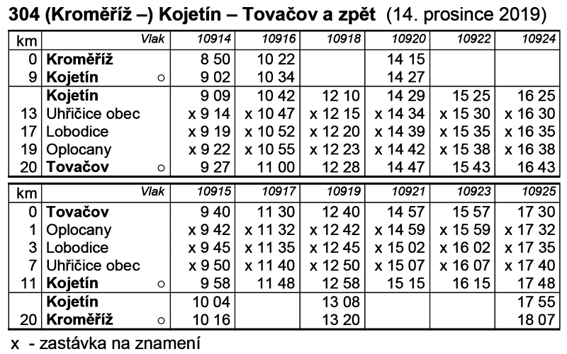 Os 10828 odjíždí v 16:00 z Kojetína |