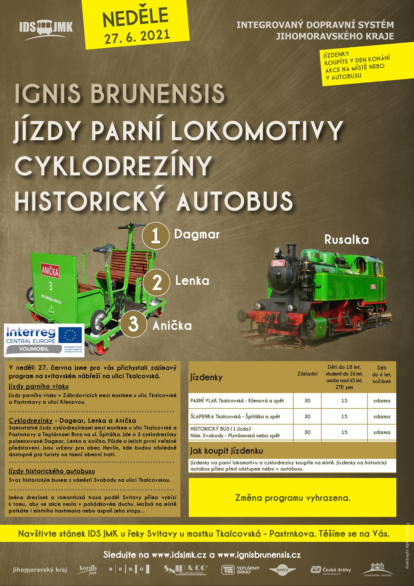 - Dny dopravní nostalgie v Brně plakát s programem na víkend 26. a 27. června 2021