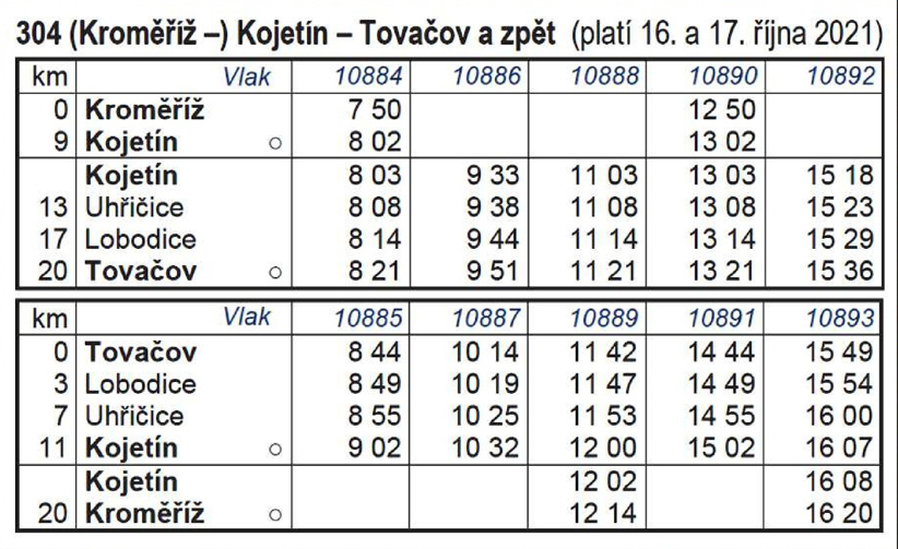 Os 10888 odjíždí v 11:03 ze stanice Kojetín |