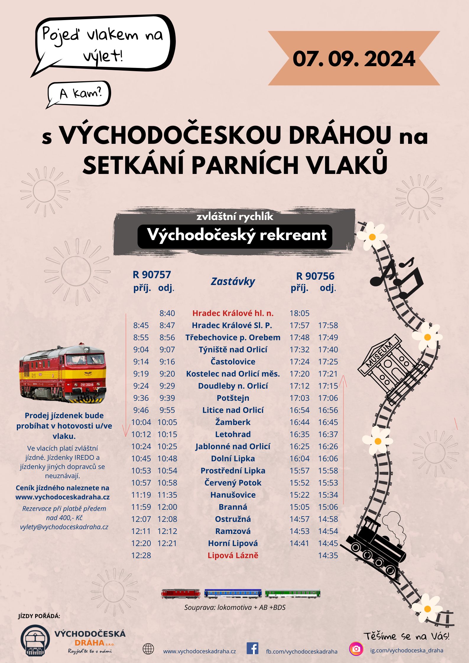 - Plakát „Východočeský rekreant“ s Východočeskou dráhou na setkání parních vlaků
