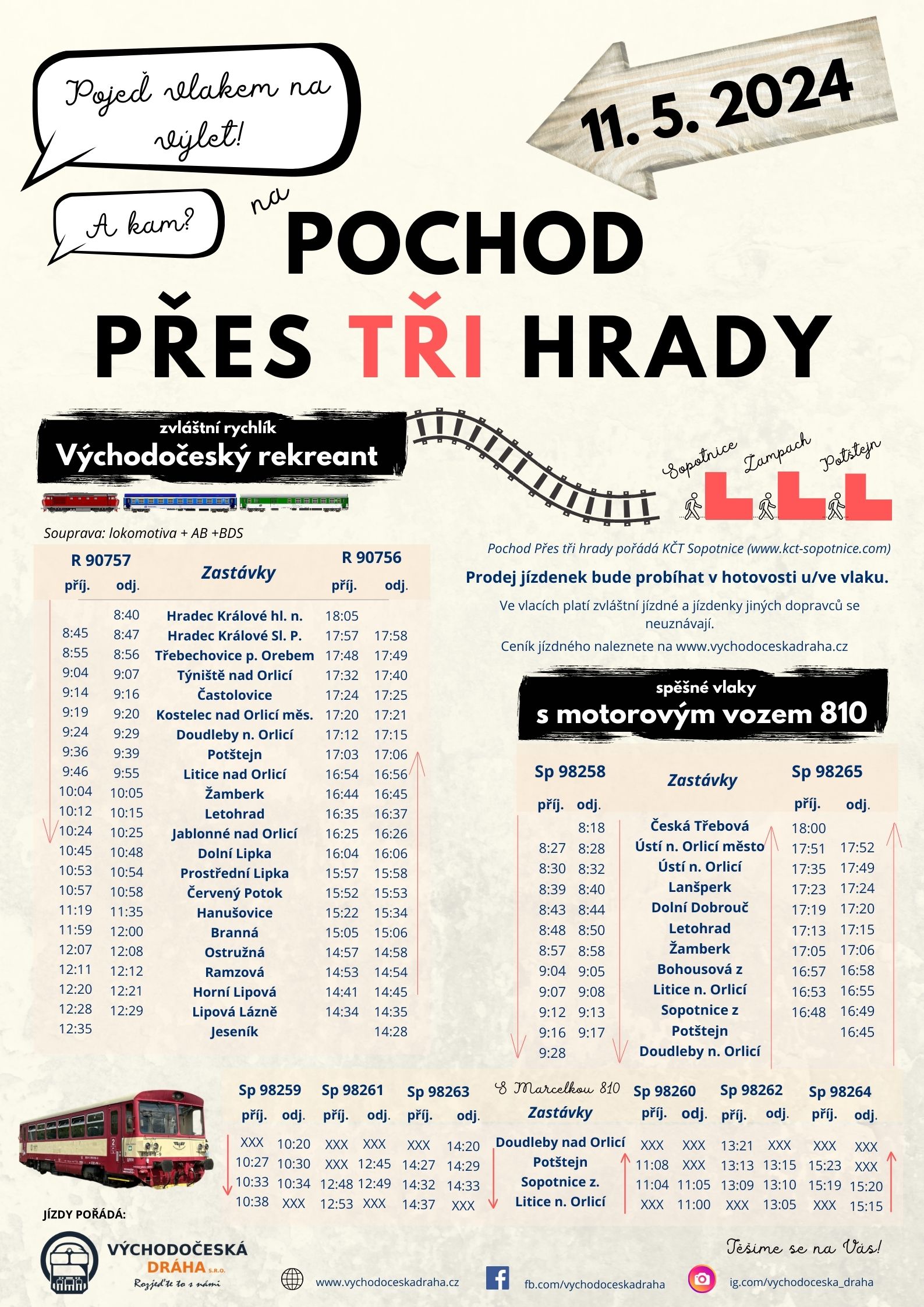 Vlakem na „Pochod přes tři hrady“ 11. 5. 2024