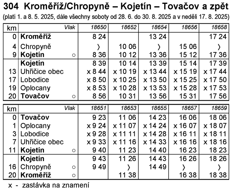 13   06:06   5.7. - Os 18656 odjíždí v 15:06 ze stanice Chropyně
