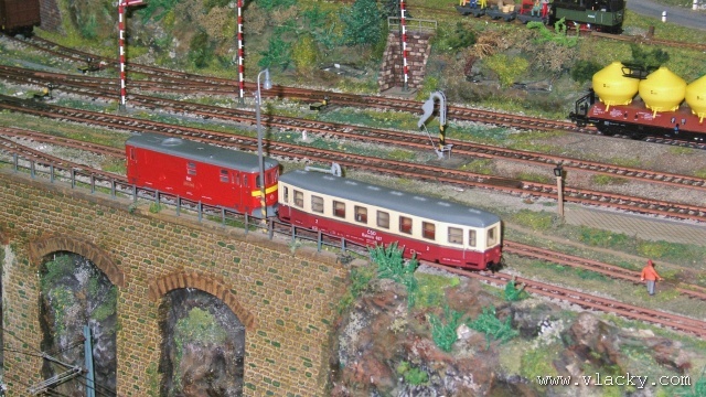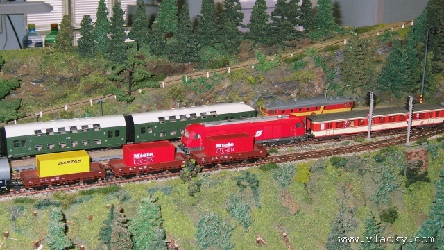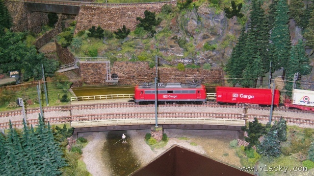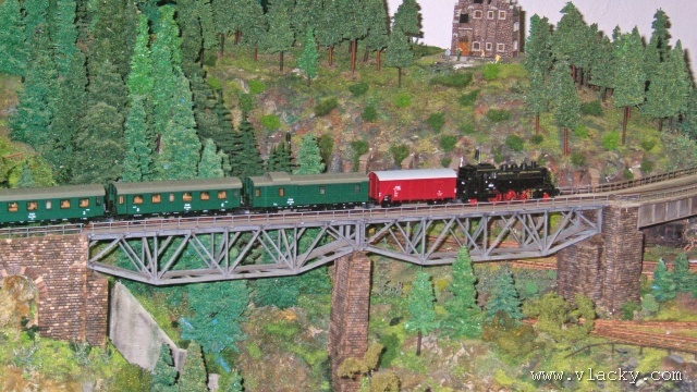 Co nového se na kolejišti událo? Pravá strana kolejiště se stanicí Kamenice, která procházela kompletní rekonstrukcí, je v podstatě dokončena. Samozřejmě drobnosti se dají dodělávat neustále, ale hlavní terénní úpravy byly provedeny a základní panel nikde neprosvítal. Oko každého návštěvníka jistě potěšily ucelené soupravy nákladních vlaků, které v této části kolejiště projížděly bohatě členitým terénem. Velkou část svého vymezeného času jsem věnoval pozorování hlavní dvojkolejné trati, která jako hlavní dopravní linie vycházela z tunelu ve středním panelu kolejiště a pokračovala na levém panelu, kde opět mizela v tunelu a ústila do skrytého nádraží. Právě na této trati panoval čilý provoz a mnoho různorodých souprav je zachyceno ve fotogalerii. Děti nejvíce oceňovaly čilý ruch na kolejiši, zkrátka aby se pořád po trati proháněl nějaký vlak. Ovládání provozu na takovém modelovém kolejišti při výstavě klade velké nároky na členy klubu. Provoz je řízen zatím analogově a aby se na kolejišti proháněly neustále soupravy vlaků, musela se obsluha každého řídícího panelu pěkně činit. Analogový způsob ovládání byl vidět hodně právě na dvojkolejné trati, kde se občas soupravy pohybovaly neodpovídající nebo proměnlivou rychlostí. Právě pro potřeby výstavy by dvojkolejce se skrytým nádražím slušel digitální a plně automatický provoz. Návštěvníci by byli spokojeni a obsluha by se mohla věnovat provozu na vedlejších tratích. V klubových prostorách bylo možné v průběhu výstavy zakoupit modely od bohumínské firmy Hobby Shop, jednoho ze sponzorů klubu. Dále doporučuji ke shlédnutí klubové stránky, které nedávno prošly velkou aktualizací. Další informační zdroje: