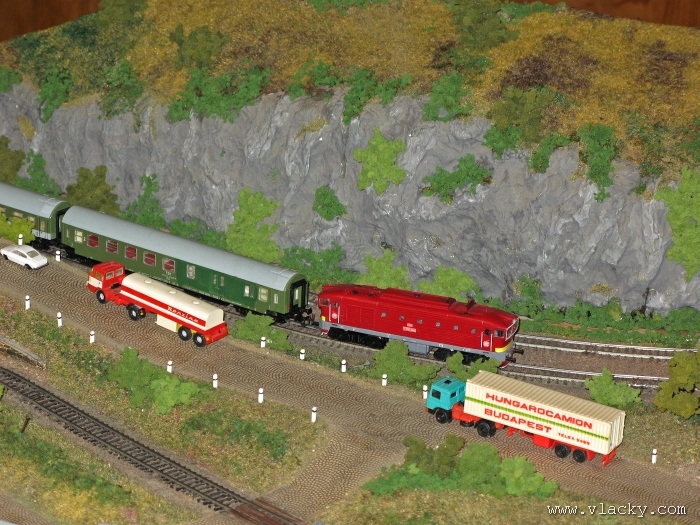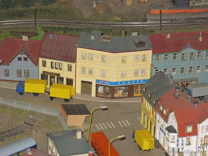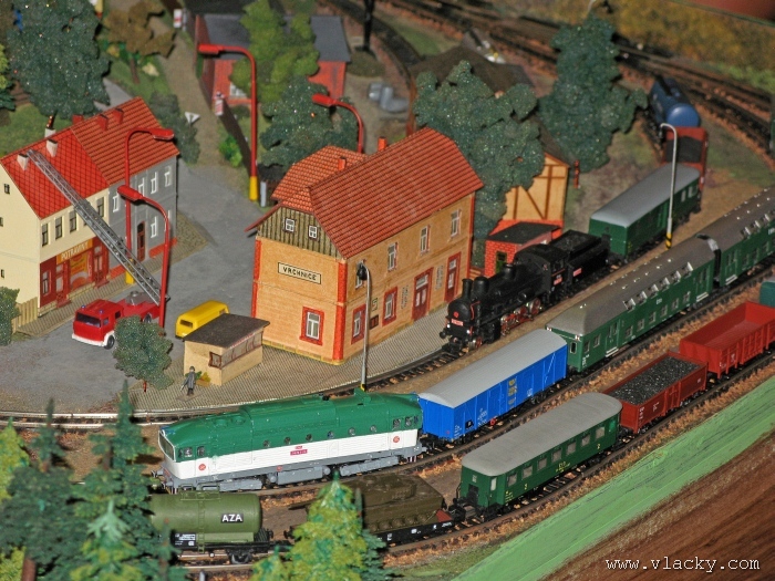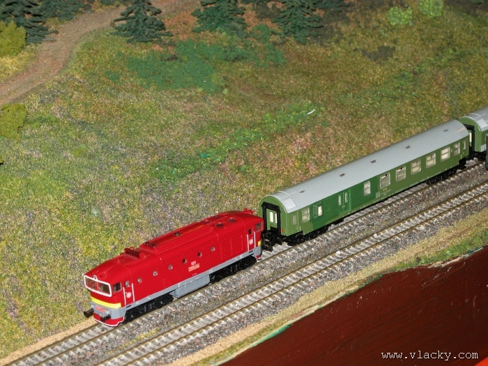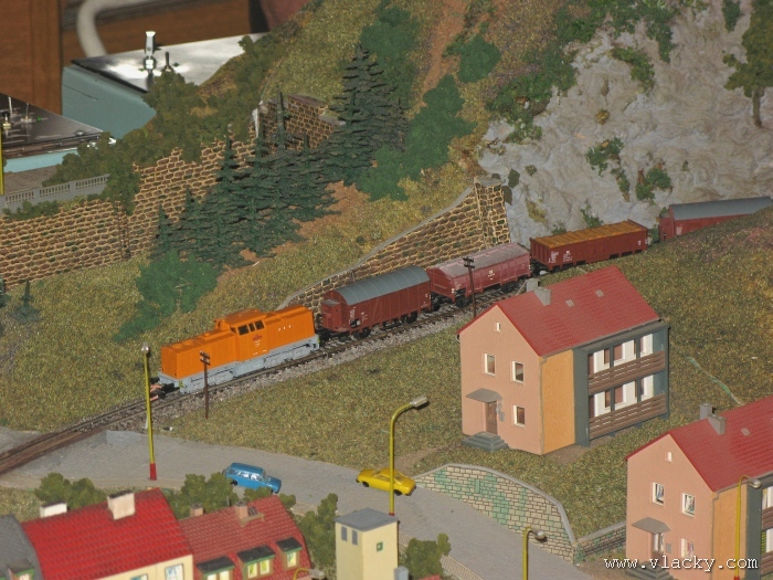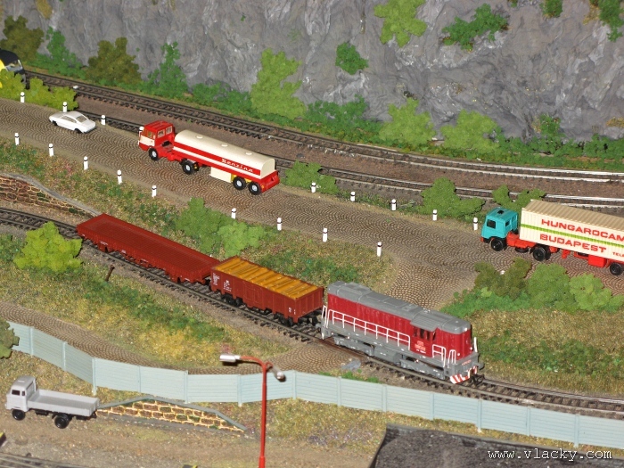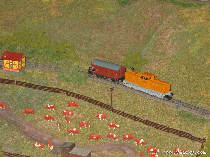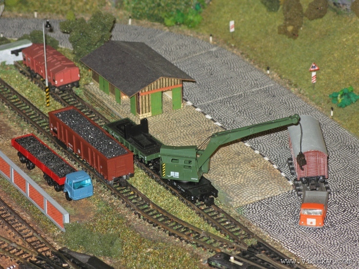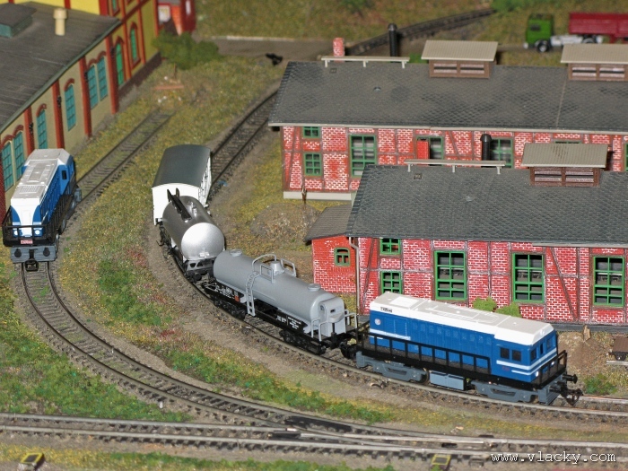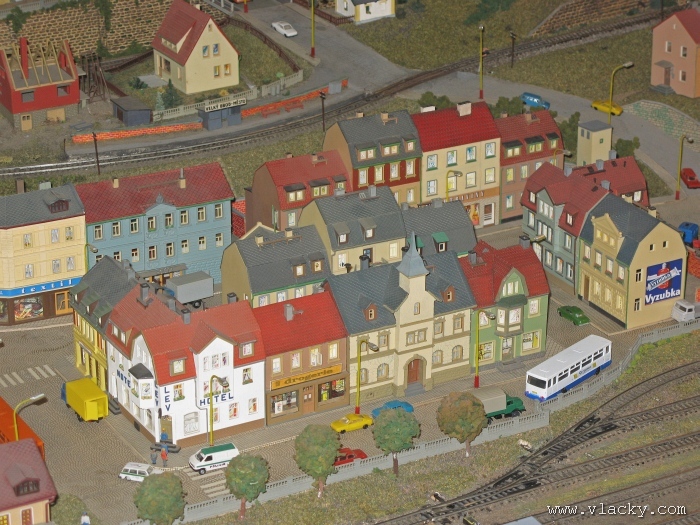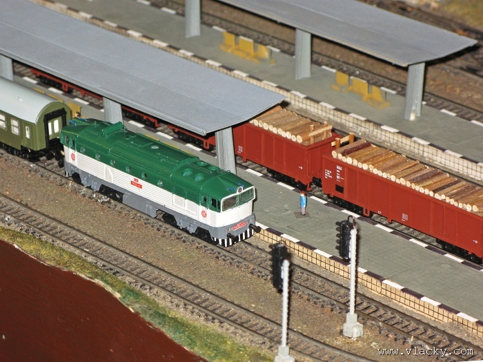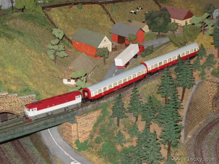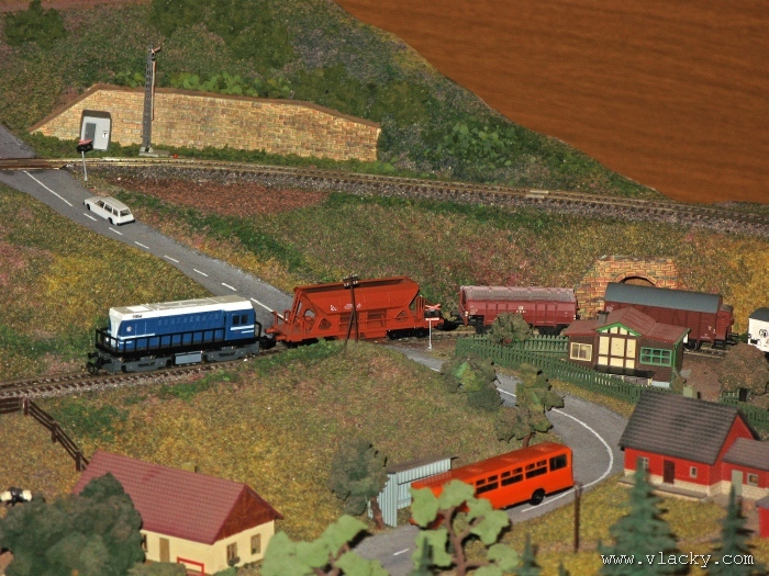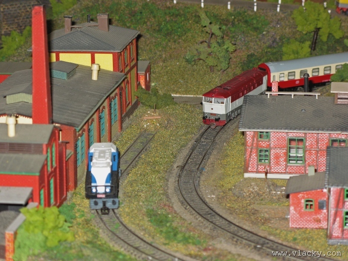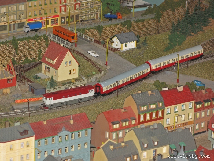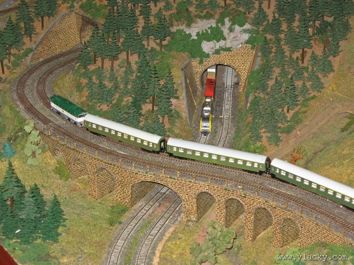 Zevrubnému popisu kolejiště jsem se věnoval již v loňské reportáži. Proto jsem se spíše zajímal o provoz na kolejišti a pokukoval jsem, zda-li se již modeláři pustili do modernizace hlavní stanice Velký Brod. Z vlastní zkušenosti nejde jen o prostou výměnu původného plechového kolejiva tvaru obráceného U za moderní profilové, ale zejména ve stanicích musí dojít při výměně výhybek ke změně geometrie zhlaví. Původní výhybky s úhlem odbočení 22,5 st. je nutné vyměnit za novější s úhlem odbočení 15 st. a menším. Jak je vidět např. na záběru levého zhlaví z minulé výstavy nebo aktuálnějšího pohledu z jiného úhlu, rekonstrukce bude určitě náročná. Z fotogalerie je patrné, že veškerý provoz na hlavní dvojkolejné trati i vedlejší jednokolejné byl zajišťován motorovou trakcí. Na dvojkolejce mohly soupravy vlaků jezdit opravdu v rychlém sledu. Provoz jednokolejné trati byl limitován kapacitními možnostmi trati, mezilehlé stanice Lhotka a koncové stanice Kopečná. Tentokrát jsem věnoval samostatnou fotogalerii i menšímu kolejišti v modelové velikosti N. S tímto kolejištěm jsem se setkal poprvé a snažil jsem se aspoň několika záběry přiblížit modelovaný námět. Jak už jsem zmínil při jiných výstavách, modelová velikost N umožňuje na stejném prostoru vymodelovat ze zvoleného námětu daleko větší výsek. Zároveň je však vhodné, aby návštěvník mohl takové kolejiště pozorovat zblízka a vychutnat si tak všechny detaily. V prostorách po levé straně byly navíc umístěny vitríny s výstavou modelů lokomotiv a vozů. Návštěvu výstavy mohu jen doporučit. Během mého asi dvouhodinového okukování v poledním čase nebyly u vystavovaných kolejišť žádné tlačenice a tak si každý návštěvník mohl výstavu vychutnat. Další informační zdroje: