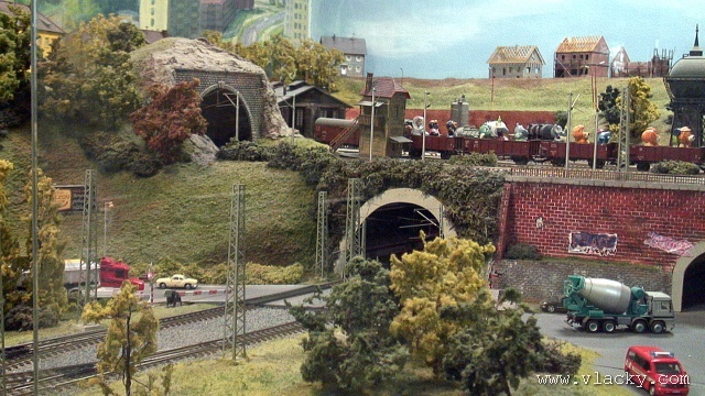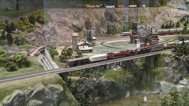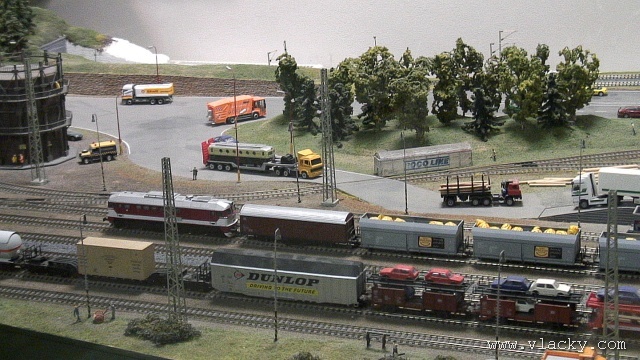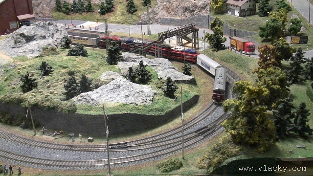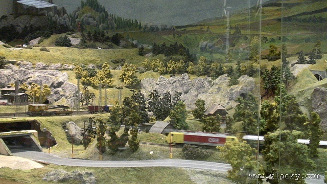 Samotné modelové kolejiště zabírá zhruba polovinu prostor. Takové výstavní kolejiště má samozřejmě jiný charakter, než menší kolejiště převážená na jednorázově organizované akce. Musí diváky zaujmout bohatostí provozu a všemi detaily okolo a hlavně je musí zaujmout tak, aby opětovně po nějakém čase výstavu navštívili. Nutný je také plně automatický provoz a to dostatečně spolehlivý. K tomu slouží velké nástěnné panely, které za množstvím (laikovi nic neříkající) signalizace skrývají potřebný digitální automat. Vlastní automatický provoz je skutečně zvládnutý dobře, vlaky jezdí za sebou v krátkých intervalech a jejich rychlost je řízena v závislosti na projížděné trati, zhlaví stanice nebo na obsazenosti následujícího úseku. V souvislosti s autoblokem jsem na trati nepostřehl oddílová návěstidla v místech, kde vlaky zastavovaly. Dá se říci, že správné kolejiště není nikdy hotovo. U výstavního kolejiště to platí dvojnásob. V pravém modulu s motivem venkova už probíhají stavební upravy, vesele se bourá. Odhaduji, že se bude upravovat průběh silnice v terénu a přizpůsobovat pro provoz autíček car-systémem. I přes několikaletý náročný provoz je kolejiště dobře servisováno, až na takové drobnosti, jako je mírně se rozpadající nástupiště městského nádraží, na něm není vidět provozní opotřebení. Pokud by některého z dětských návštěvníků omrzelo pozorování kolejiště, může si ve vedlejší místnosti buď zazávodit na autodráze Carrera, nebo zkusit náročnější ovládání RC autíček. Další informační zdroje: