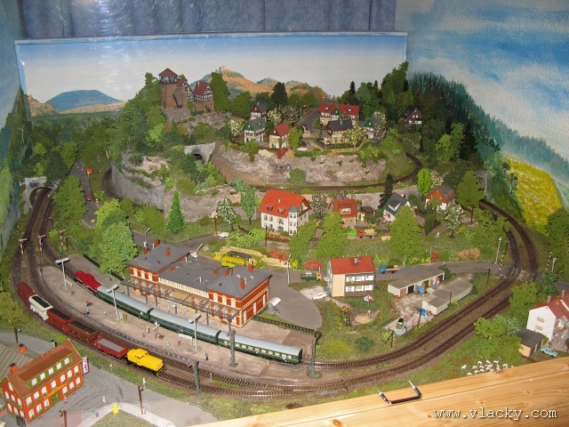 Velké modelové kolejiště ztvárňující okolí Labe s tratí Bad Schandau - Pirna
