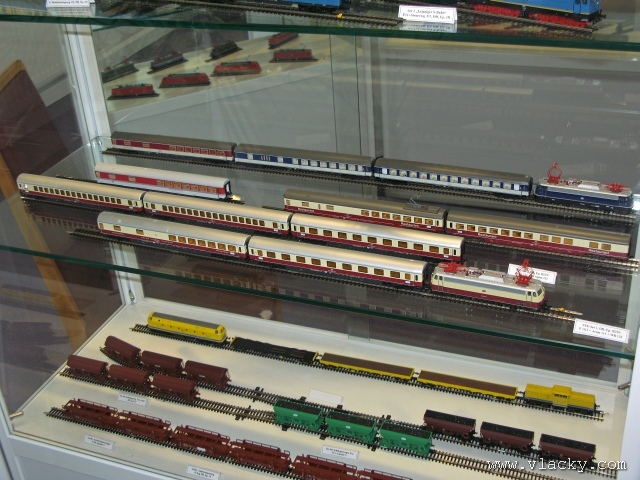 Cesta do Sebnitz vedla nejdříve přes Děčín. Už na trati směřující z Děčína k hraničnímu přechodu ve Hřensku a dále do Bad Schandau byl provoz ve znamení vozového parku DB. Neodolal jsem možnosti vyfotit osobní vlak směřující do Bad Schandau. Tady bych připomenul, že na tratích DB jsou běžně provozovány jednotky vedené řídícím vozem a tlačené lokomotivou na konci soupravy. V Bad Schandau jsme odbočili vpravo na místní cestu ve směru na Sebnitz. Nutno poznamenat, že cesta na Sebnitz odbočuje dost ostře vpravo a směrovou ceduli jsme napoprvé přehlédli. Přímo v Sebnitz se nachází vedle sebe TILLIG Modellbahnen GmbH & Co. KG na adrese Promenade 1 a hned v sousedství na Lange Straße 58-60 je budova prodejny Modellbahnshop Sebnitz, kde se nachází zároveň i muzeum. Zrovna následující dva víkendové dny 16. a 17.6.2007 se zde měly konat Dny otevřených dveří. Přípravy byla v plném proudu, prodejna se plnila novou dodávkou modelů přímo z výrobní linky a zajímavé akční slevy vybízely k nákupu. Vstup do vlastního muzea je na konci prodejny. V této části mě zaujala hned vedle malého kolejiště prezentace našeho domácího výrobce modelů ve velikosti TT, firmy Loco. V prvním patře se nacházely modely ze starší éry modelové velikosti TT, firmy Rokal. Také jsem shlédl důvěrně známé modely z produkce Berliner TT Bahnen (BTTB), se kterými se setkala asi většina modelářů TT. Tehdejší výrobní program byl relativně úzký a nebylo zvláštností, že každý z modelářů TT měl stejnou základní sadu modelů. Atmosféra tehdejší doby na mě dýchla z kolejiště, které bylo vystaveno na konci sálu. Hned vedle je ukázka geometrie původního plechového kolejiva. Jsem rád, že jsem s plechovým kolejivem skoncoval a přešel na modelové profilové kolejivo. Přineslo mi to nejen v podstatě neomezené možnosti geometrie díky použití flexi kolejiva a stavebnic výhybek, ale také zlepšení modelového vzhledu a zvýšení spolehlivosti provozu na tomto kolejivu. Při stoupání po schodišti mezi prvním a druhým patrem musí zaplesat srdce každého sběratele. Podél stěn schodiště se nachází výstava setů, z nichž mnohé bych také rád měl ve své sbírce. V druhém patře se nacházejí vitríny s převážně současnou produkcí firmy Tillig. Po celé pravé straně se nachází veliké modelové kolejiště, které ztvráňuje okolí Labe s tratí Bad Schandau - Pirna. V zadní části sálu je potom menší kolejiště s námětem úzkorozchodné trati posazené do zimního období. Oběma kolejištím je věnována samostatná část fotogalerie. Cestou zpátky do přízemí jsem ještě pořídil záběry nejstarších kolejišť v modelové velikosti 0. Nakonec při nákupu v prodejně byla i akční sleva vyhlášená na Dny otevřených dveří, takže jsem byl maximálně spokojen. Na zpáteční cestu jsme se vydali přes hraniční přechod Dolní Poustevna. Stačilo jet od Modellbahnshop Sebnitz po Lange Straße pár set metrů dále. Trochu na mě zapůsobil kontrast mezi oběma příhraničními městy Sebnitz a Dolní Poustevna. To však může každý návštěvník těchto dvou sousedních měst raději posoudit sám. Další informační zdroje: