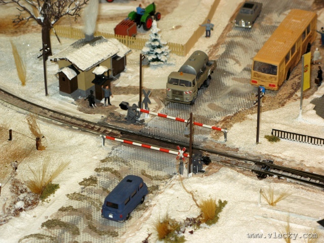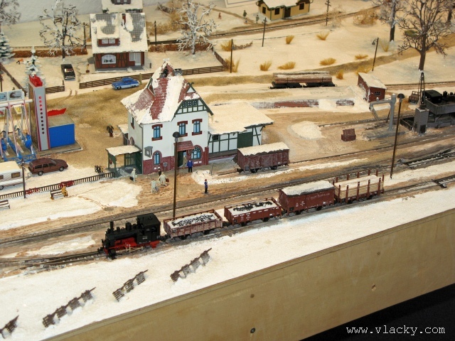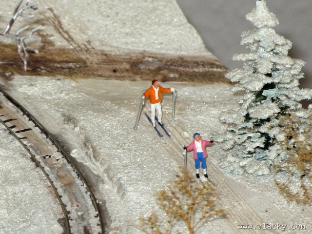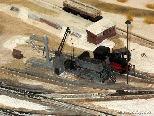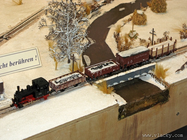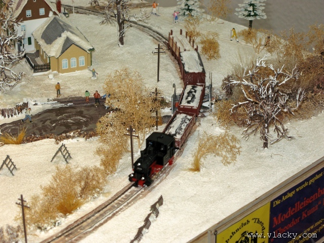 Modelové kolejiště s námětem úzkorozchodné trati v zimním období