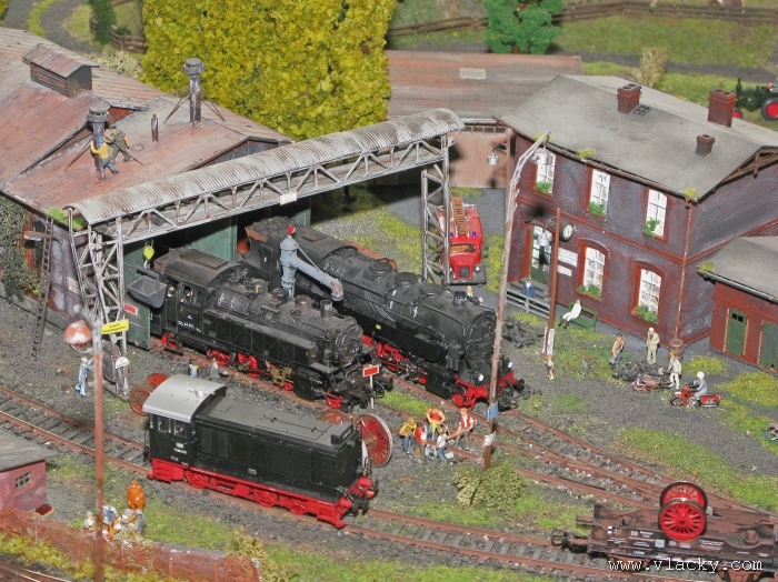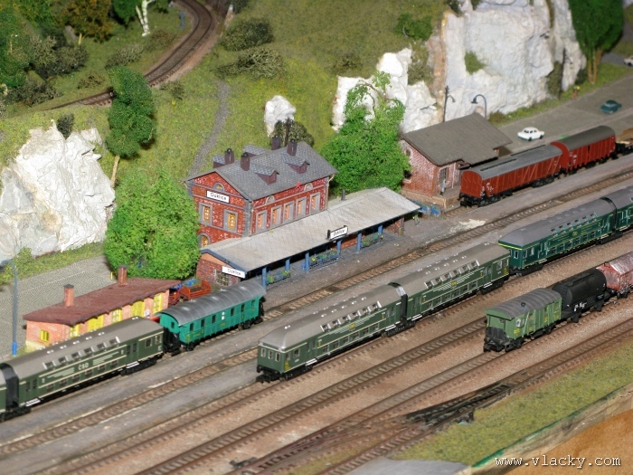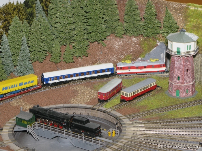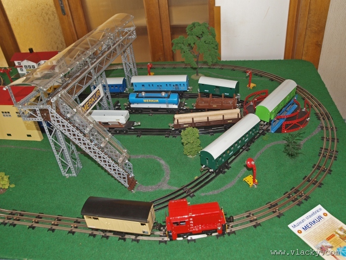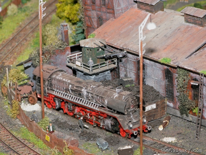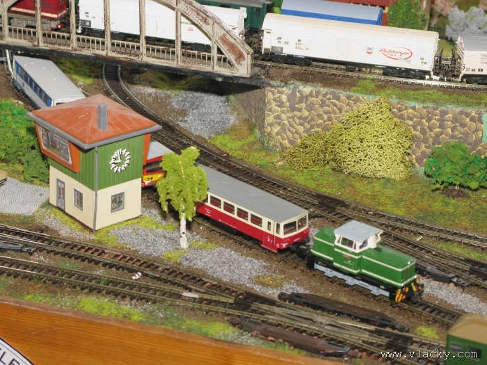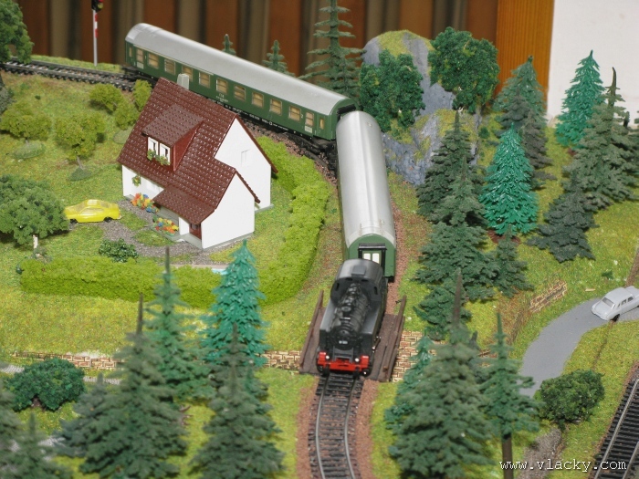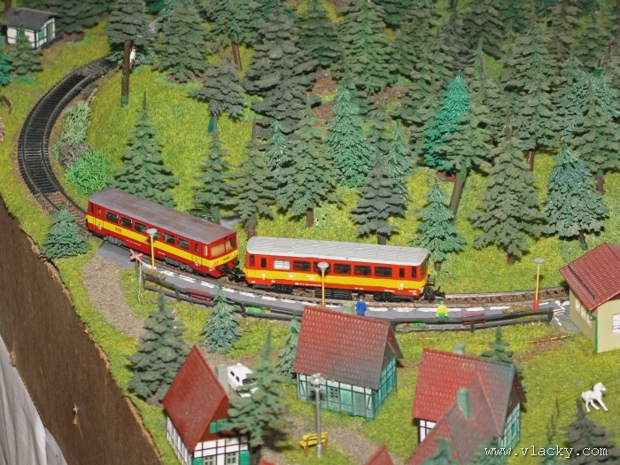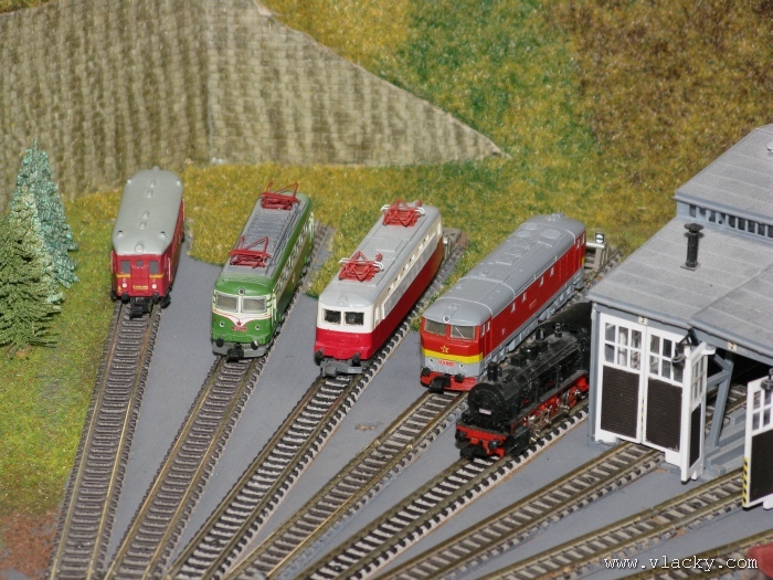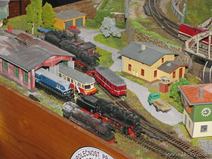 I letošní výstava trvala celkem 4 dny od čtvrtka 24.4 do neděle 27.4. Zúčastnil jsem se opět v sobotu a ve vyhrazeném čase jsem se snažil zachytit maximum foto a video materiálu. Celou místnost pro sebe zabrala prezentace velké zahradní železnice. Modely samotné si tak nepotrpí na věrnost zpracování detailů, jsou však dostatečně robustní pro náročný provoz. Díky své velikosti není problémem, aby lokomotivy byly vybaveny např. zvukovými generátory. Klasická kolejiště všech modelových velikostí byla potom soustředěna v dalších propojených místnostech. Snažil jsem se fotogalerii sestavit tak, aby svým obsahem vhodně doplňovala reportáž z výstavy 2007. Proto bych si dovolil upozornit spíše na kolejiště, která jsem ještě neměl zdokumentována. Hned po levé straně při vstupu do místnosti bylo velké kolejiště v modelové velikosti N. Zajímavé je i malé kompaktní kolejiště v modelové velikosti TT, které není o nic větší než stůl a plně tak naplňuje označení této velikosti TT = Table Top. Přitom na tak malé ploše byly ztvárněny zajímavé náměty. Podobné velikosti je jiné firemní kolejiště Roco velikosti H0, které není tak členité, ale ztvárňuje zajímavou předlohu zimní krajiny. Na první pohled se může zdát, že modelování zasněžené bílé zimní krajiny je daleko jednodušší, naopak je nutné věnovat větší pozornost patinování a detailům, které charakterizují toto roční období, např. navátý sníh, námraza nebo rampouchy. Při každé výstavě se rád zastavím u zajímavé diorámy lokomotivního depa. Tento námět je z modelářského pohledu velmi pěkně zpracován. Protože se však nejedná o klasické kolejiště a neprohání se po něm soupravy vlaků, zůstává tak trochu stranou pozornosti dětských návštěvníků. Tentokrát jsem se soustředil na část depa, kde se provádí zauhlování parních lokomotiv. Samozřejmě i na letošní výstavě byly ke shlédnutí modely ve vitrinách a ukázka diarámat. My starší si ještě dobře pamatujeme na náš oblíbený Merkur. Je k sehnání i dnes s daleko bohatší nabídkou. Pokud se unavíte prohlídkou malých železničních modelů, možná přijde vhod něco jiného. Před budovou kulturního domu se prezentoval Veterán klub Pardubice se svým vozovým parkem. Ti menší se mohli svézt na skutečném parním vláčku Sičovy drobné železnice a naopak ti odvážnější třeba pouštní verzí Mercedes Benz 15 A z roku 1941. Další informační zdroje: