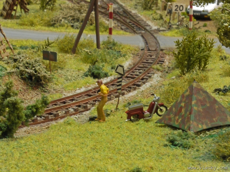 Skutečně začátkem roku 2009 byl oznámen termín foto-videokace na klubových stránkách KŽM Přerov. Začátkem roku bývá všeobecně volněji, většina klubů si své pravidelné výstavy plánuje v předvánočním období. Tentokrát měla být foto-vieokace časově rozdělena na dvě oddělené části. V rámci jednoho dne tak měla proběhnout samostatně fotoakce a samostatně videoakce. Je to celkem pochopitelné, protože požadavky na focení jsou většinou protichůdné s požadavky na natáčení. Týden před plánovaným termínem jsem byl mailem ubezpečen, že foto-videokace proběhne, i když počet přihlášených účastníků byl malý. O to více jsem se mohl těšit na exkluzivní záběry. Po deváté hodině jsem dorazil do klubu, kde již bylo vše připraveno jako ve filmařském studiu. K dispozici byl nachystaný celý štáb členů klubu, doplňková osvětlovací technika a modré pozadí, které bylo možné použít v případě záběrů, které by zabíraly i prostor mimo kolejiště. V provozu ten den byly většinou soupravy ze IV. epochy. Na hlavní dvojkolejné trati jsme si potom mohli vybrat z množství souprav IV. i V. epochy, které byly připraveny ve skrytých nádražích. Dával jsem přednost jen několika málo soupravám, které jsem natáčel při jízdách na dvojkolejné trati z mnoha pohledů, které jsem následně mohl sestříhat do obsahově kompaktnějších klipu. Při focení jsem se snažil zachytit spíše detaily na kolejišti, které kolejiště celkově oživují a zpestřují. Např. bych zmínil hnízdo čápů na budově pivovaru "Krestan", fotograf u trati, který kempuje se svým Trabantem nedaleko na louce, funkční drtič kamene, který plnil přistavené vozy na vlečce. Sobotní poklid narušoval zvuk pily z nedaleké zahrádky. V depu stanice Kamenice pózovala filmařům parní lokomotiva 354.121. Soukromí zemědelci zatím využívali slunečné počasí ke sklizni a sušení sena na loukách podél hlavní dvojkolejné trati, zatímco v nedalekém kempu si užívali dovolenkáři koupání a sportovního vyžití. A když nic jiného, tak ti starší se aspoň vyhřívali na zápraží. Díky malému počtu účastníků jsme neměli problém se dohodnout a podle možností jsem fotil nebo natáčel. Navíc jsme si mohli pořídit záběry ze všech možných i nemožných úhlů nejen z prostor před kolejištěm, který bývá vyhrazen návštěvníkům výstav, ale i z druhé strany. Přesto můj plánovaný čas rychle utekl a stejně jako minule, ani teď jsem zdaleka nestihl zachytiti všechny zajímavé detaily. Takže zase příště... Další informační zdroje:
