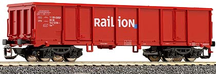 | vysokostěnný nákladní vůz červený „Railion“ |