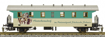 Popis   osobní vůz zelený-slonová kost s šedou střechou „National Sachsische Schweiz“
