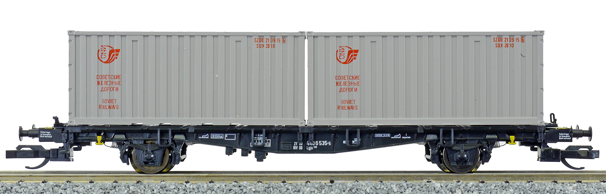 | kontejnerový vůz černý se dvěma šedými kontejnery 20' |