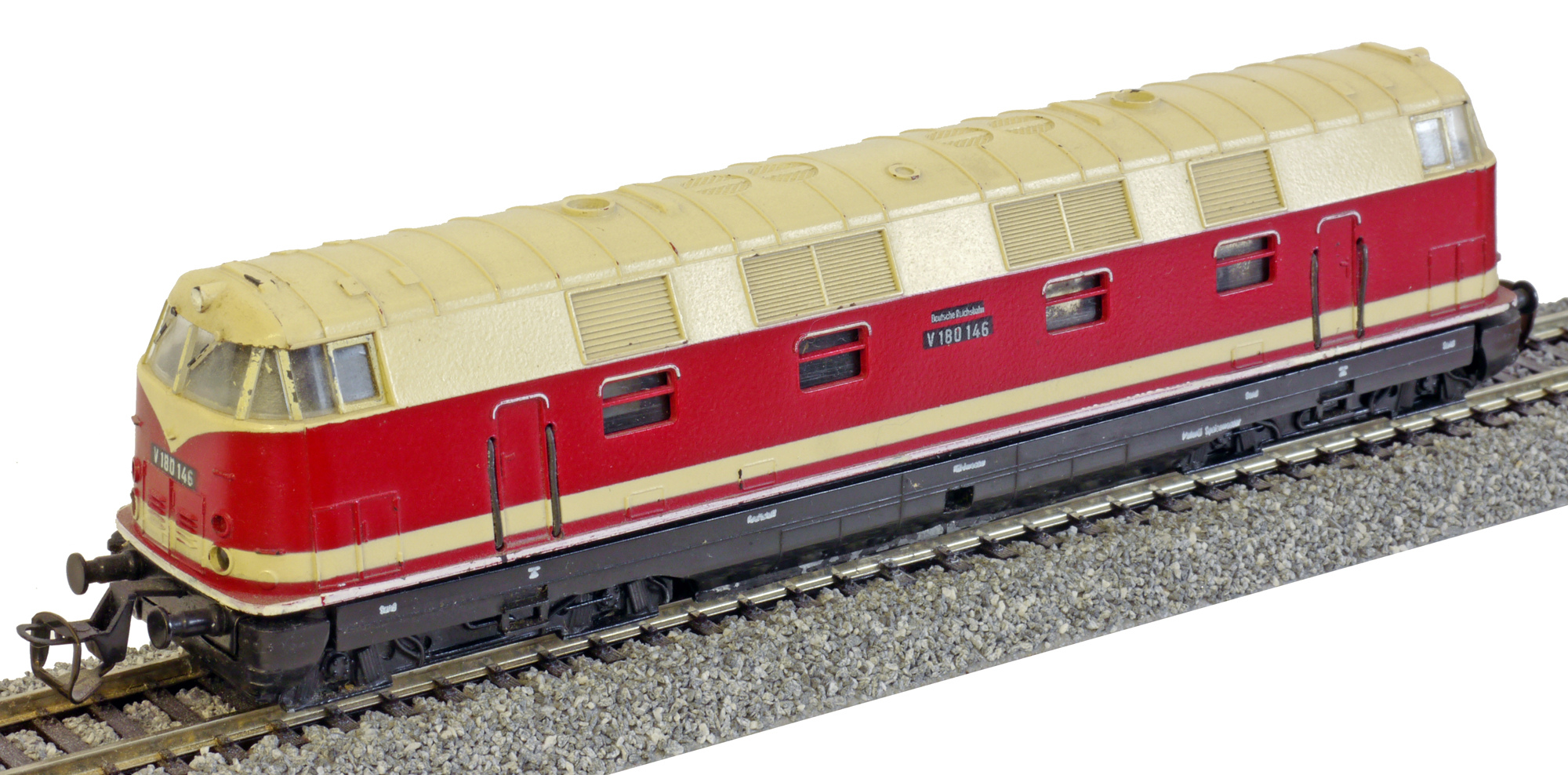 Popis   dieselová lokomotiva červená-krémová s černým pojezdem