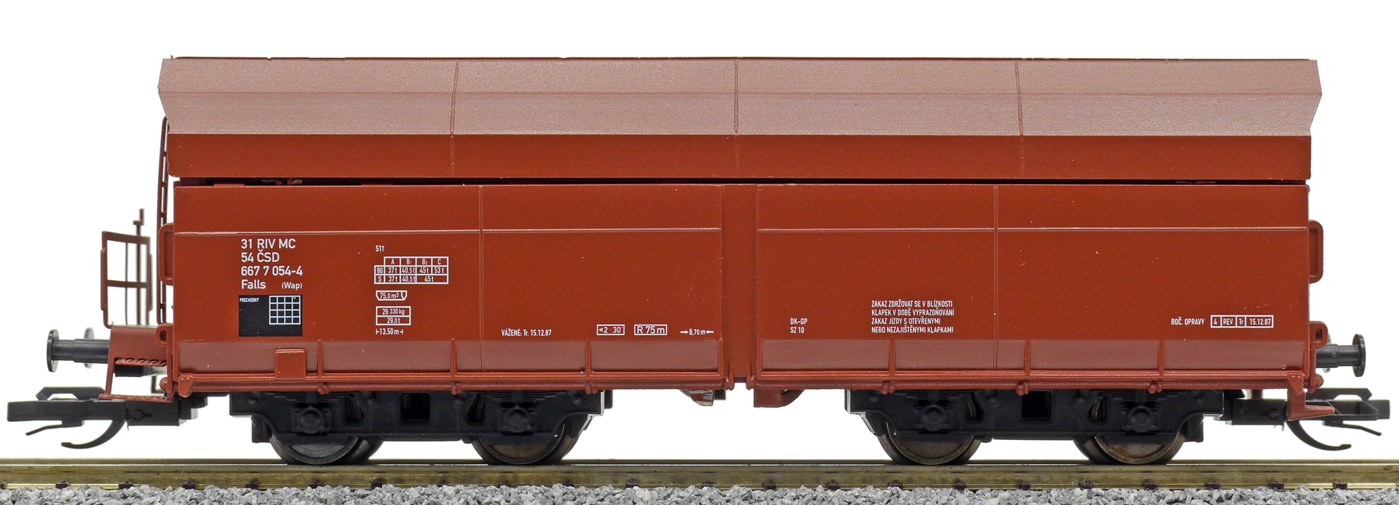 | • 31 54 667 7 054-4 | → | nákladní, s podvozky, pevný rozchod, ve vlastnictví železniční správy, RIV, PPV |
