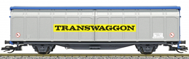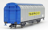 | nákladní vůz modrý se stříbrnými posuvnými bočnicemi „Transwaggon“ |