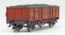 | otevřený nákladní vůz červenohnědý s patinou a nákladem |