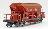 | nákladní samovýsypný vůz červenohnědý s černým rámem, s klapkami „NHKG Ostrava-Kunčice“ |