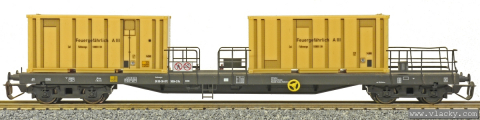 | • RS 3910 | - | plošinový vůz podvozkový běžné stavby se sklopnými čelními stěnami a klanicemi |