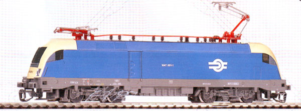 Popis   elektrická lokomotiva modrá se světle žlutými čely a šedým pojezdem
