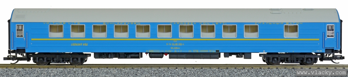 | lůžkový vůz modrý s šedou střechou pro dálkové vlaky |