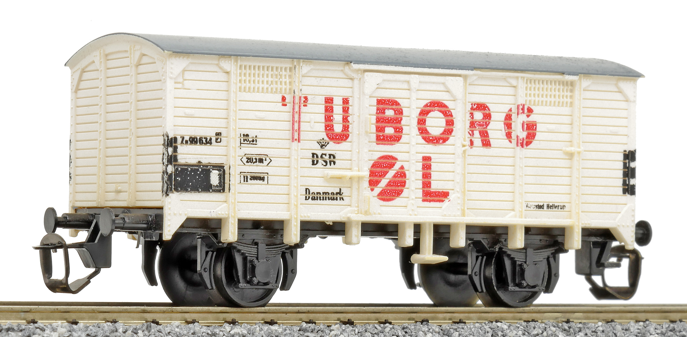 krytý nákladní vůz bílý s šedou střechou „TUBORG ØL“