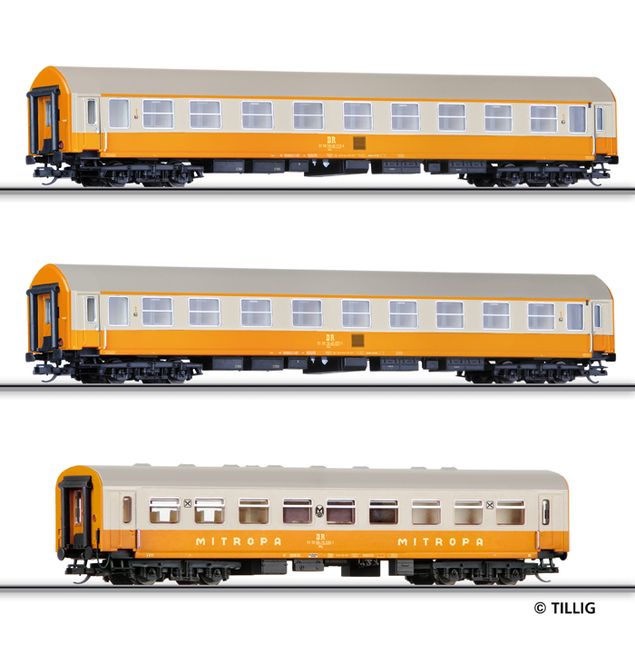 Popis   oranžový-slonová kost s šedou střechou jídelní vůz "Mitropa"