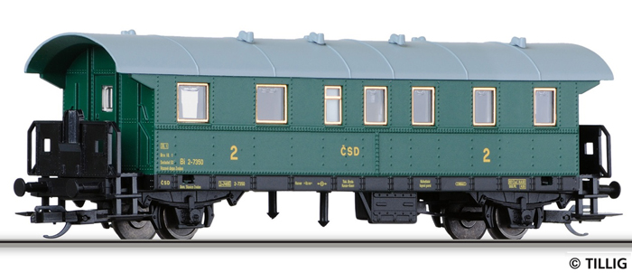 | osobní vůz zelený s šedou střechou 2. tř. |