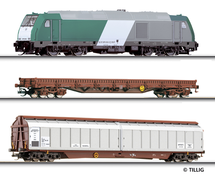 Popis   set dieselové lokomotivy „TRAXX“ 076 a dvou nákladních vozů