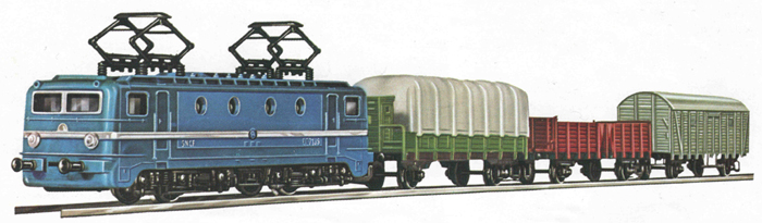 | set elektrické lokomotivy a tří nákladních vozů |