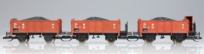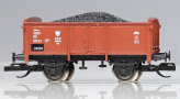| červenohnědý s brzdařskou budkou a nákladem uhlí |