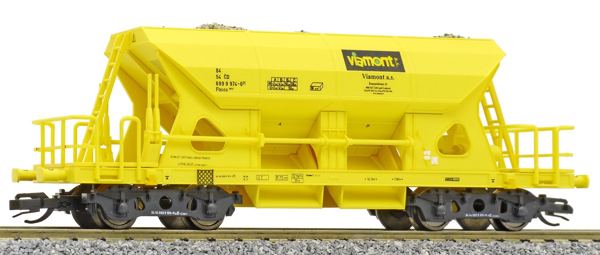| nákladní samovýsypný vůz žlutý s nákladem štěrku „Viamont“ |