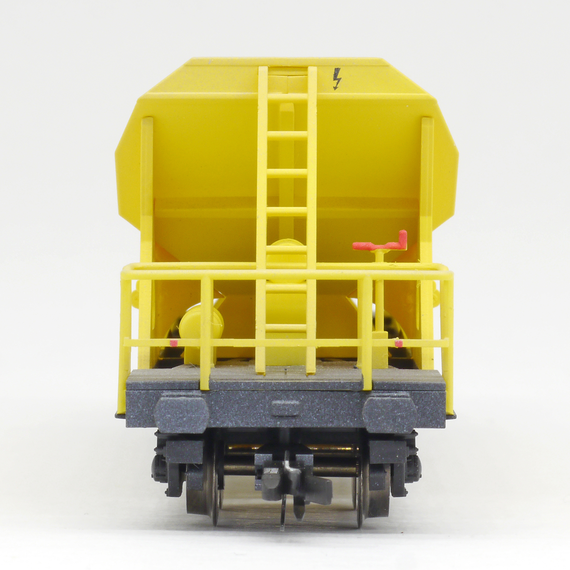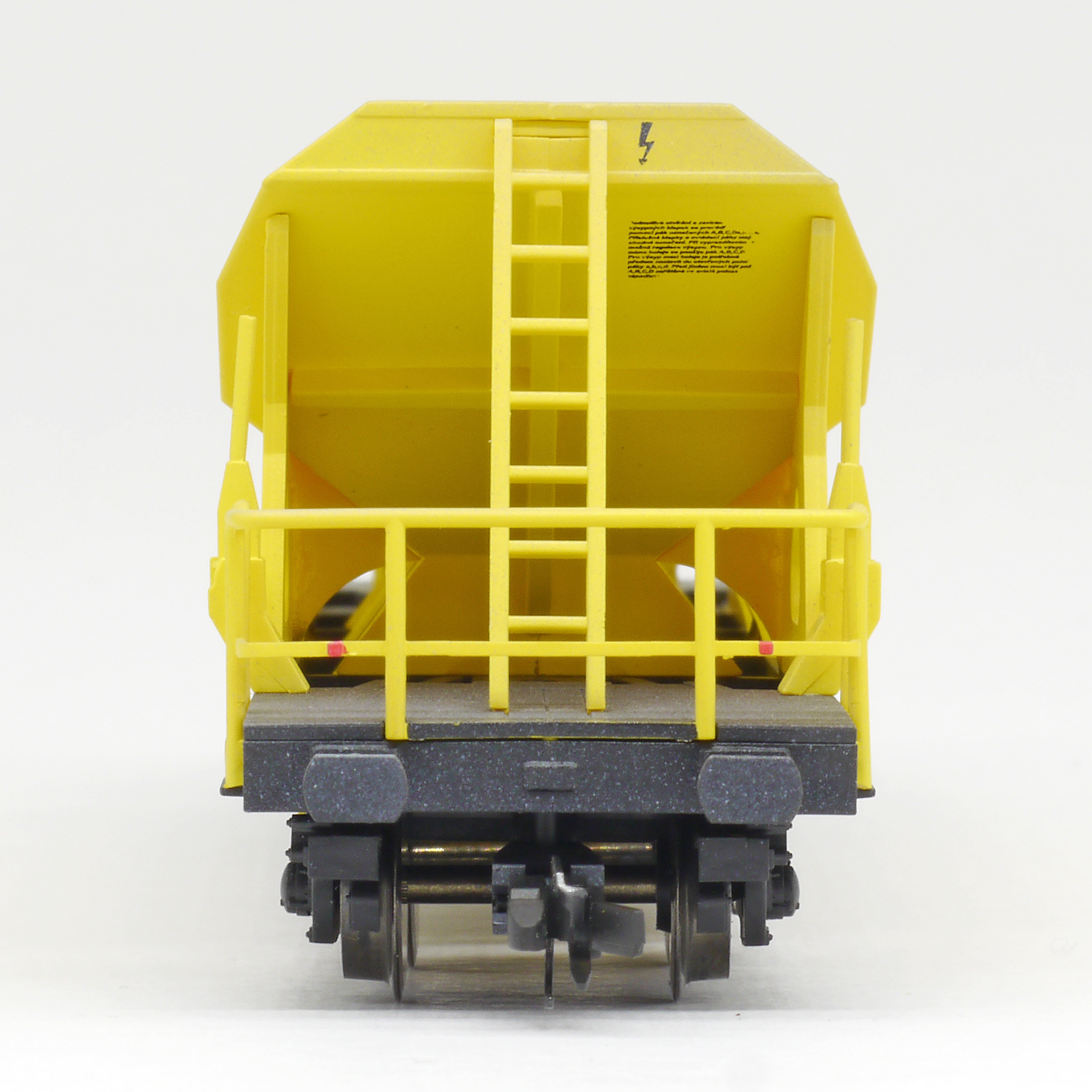Popis   nákladní pracovní vůz žlutý s černým rámem s nákladem štěrku