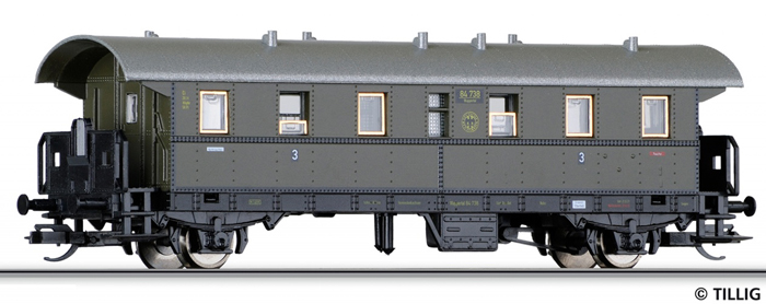 osobní vůz zelený se světle šedou střechou 3. tř.