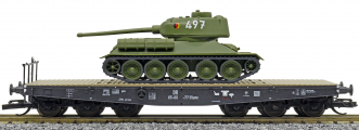 plošinový nákladní vůz černý s nákladem tanku T38/85