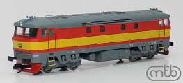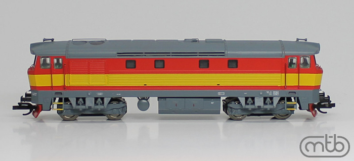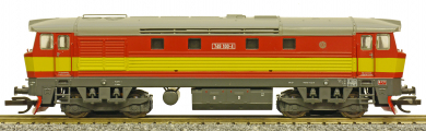 Popis   dieselová lokomotiva červená se žlutám výstražným pruhem