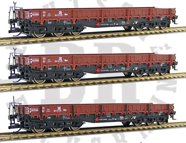 Popis   set tří červenohnědých nízkostěnných vozů