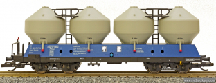| nákladní samovýsypný vůz modrý s černým rámem a šedými nádobami |