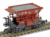 | nákladní samovýsypný vůz červenohnědý s nákladem štěrku |