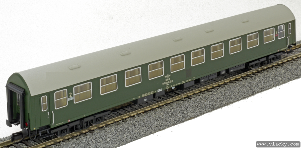 | rychlíkový vůz zelený s šedou střechou 2. tř. |