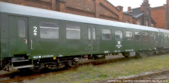 Popis   rekonstruovaný osobní vůz zelený s šedou střechou 2. tř. se zavazadlovým oddílem