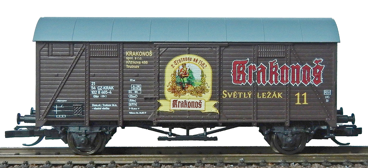 | krytý nákladní vůz tmavě hnědý s šedou střechou „Krakonoš“ |