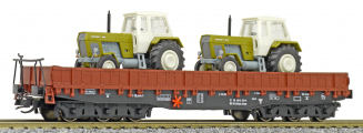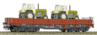 | nízkostěnný vůz červenohnědý s nákladem dvou traktorů ZT300 |